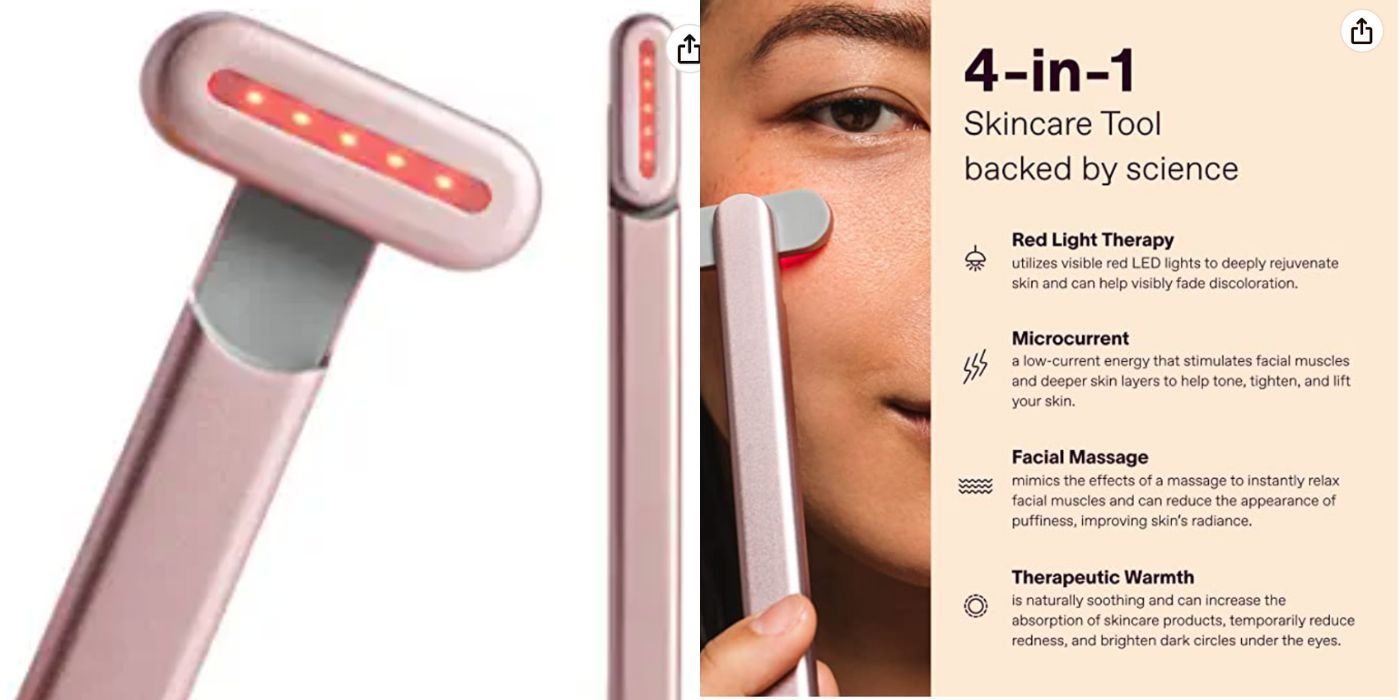 The red light therapy will refresh the skin and minimize facial impureness . The wand also releases a microcurrent to stimulate facial musculus . If those frustrative puffy eyes , okay line , and drear circles wo n’t wither , this wand could be the perfect solution .